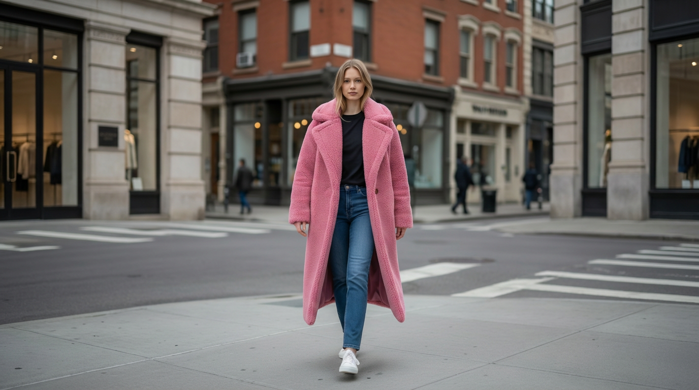 Our plush fleece coat delivers a clean, modern silhouette—perfect for cool days and city nights.
